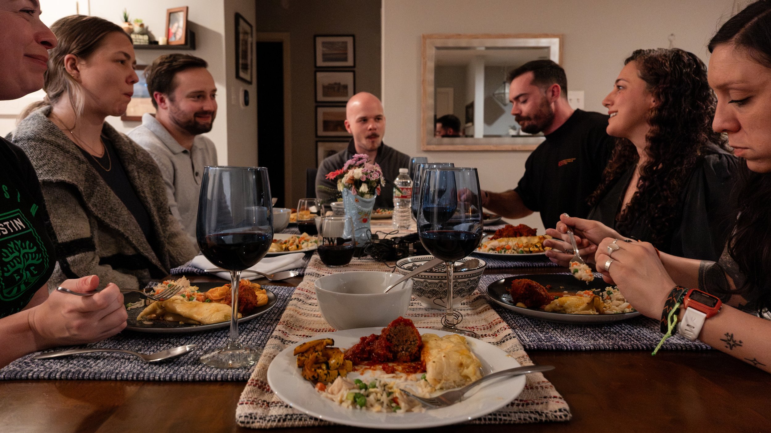 Each dinner brings together 8–12 guests for an evening of shared food and guided conversation.